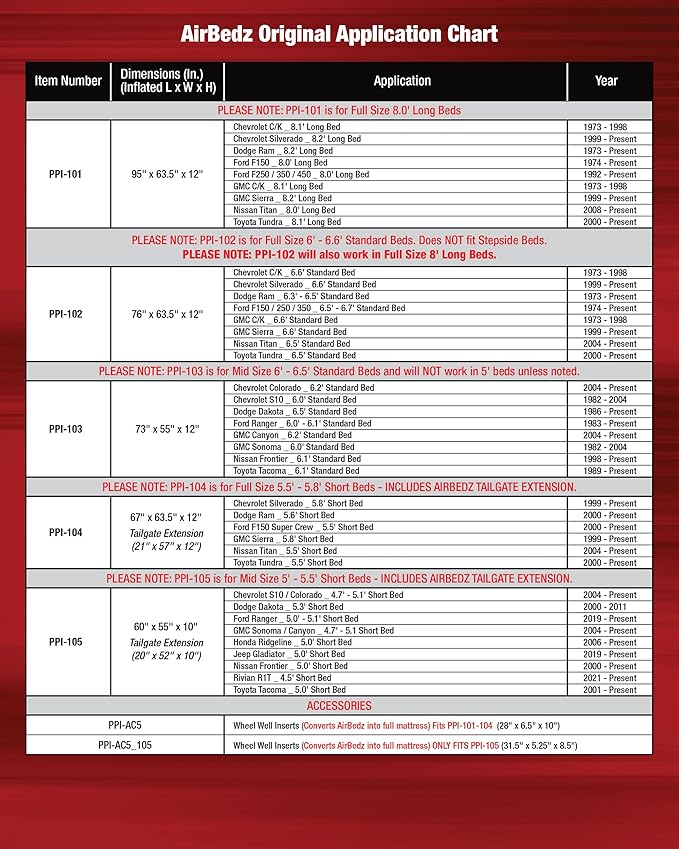 • Comfortable Sleep - Fits over the wheel wells of your pickup to utilize the entire truck bed.