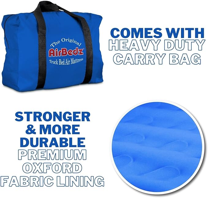 PITTMAN OUTDOORS AirBedz Mattress - Truck Bed Air Mattress, Full-Size, Long Bed, 8' Long, Built-in Rechargeable Battery Air Pump, Blue, Carry Bag, Patch Kit, 95" L x 63.5" W x 12" H