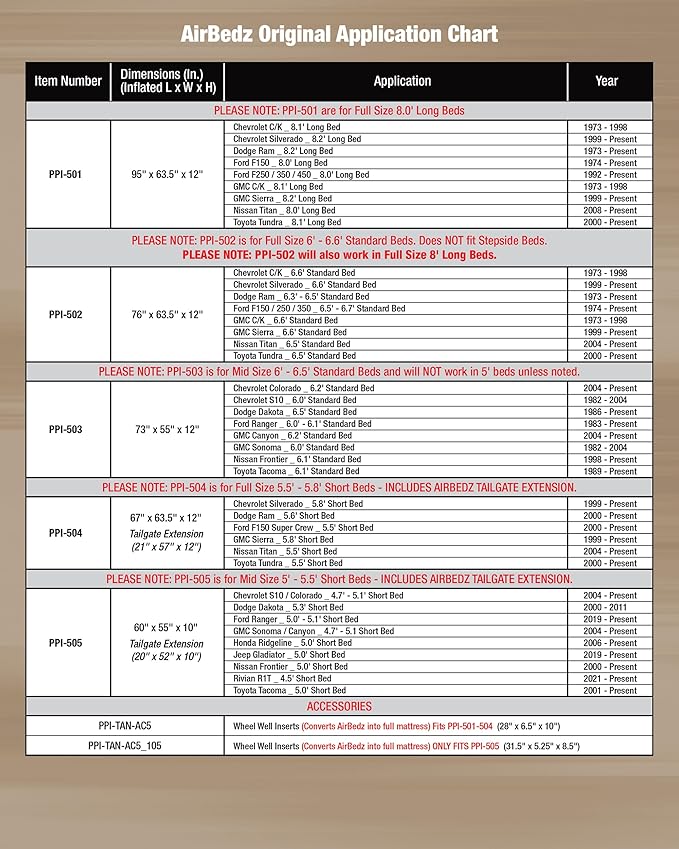 Pittman Outdoors PPI-TAN_AC5_505 AirBedz Original Tan Truck Bed Air Inflatable Wheel Well Side Inserts | Fits only PPI-505