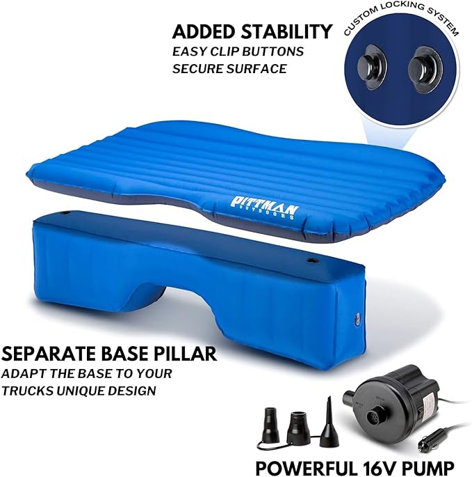 Pittman Outdoors AirBedz PPI-BLU-TRKMAT Inflatable Fabric Rear Seat Truck Air Bed Mattress | 5 Feet in Length | Fits Full-Sized Trucks and SUV's, Blue