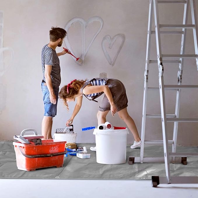 • Multi-Purpose: These tarps are used to cover your cars, motorcycles, boats, trucks, barbecue grills, tables, benches, roofs, lawns, protect wood and building materials at construction sites. They can be used as a drop cloth to keep floors clean when painting or polishing. Can be used for outdoor hunting, outdoor camping trip, backpacking, turn it into a ground tarp, tent, a canopy, an emergency shelter, blind, or ground cover, the uses are endless.