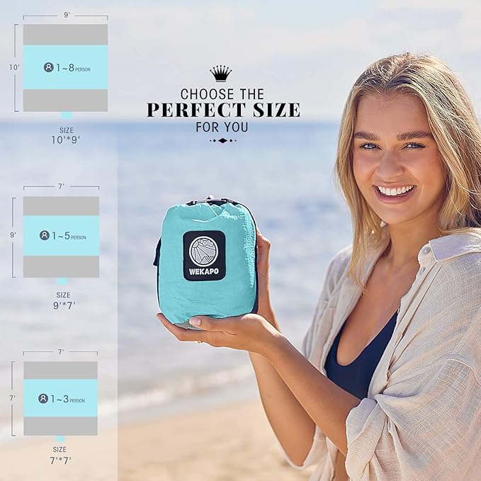 WEKAPO Beach Blanket Sandproof Waterproof, Extra Large Beach Mat, Oversized & Compact Sand Free Mat Quick Drying, Lightweight & Durable with Stakes & Corner Pockets