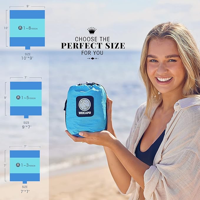 WEKAPO Beach Blanket Sandproof Waterproof, Extra Large Beach Mat, Oversized & Compact Sand Free Mat Quick Drying, Lightweight & Durable with Stakes & Corner Pockets