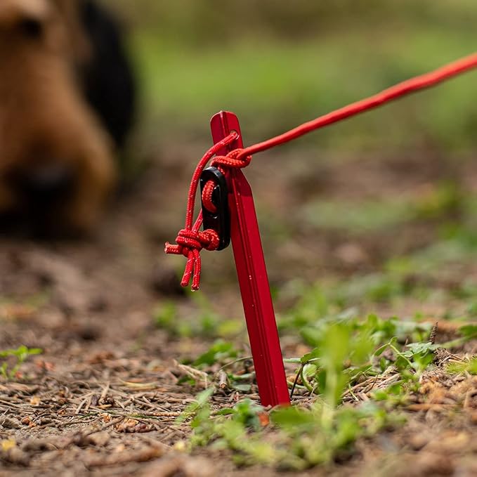 • HIGH VISIBILITY: The tent stakes come in a bright red color that make them easy to spot for adjustments or removal in dim and dusk lighting.