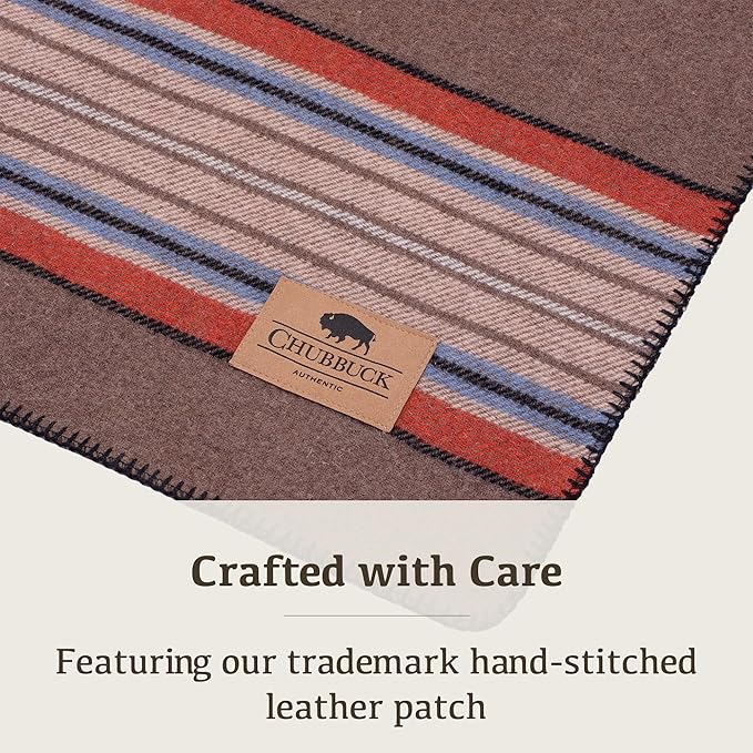 • STYLISH COZY BLANKET: Our Chubbuck wool camp blanket, made from pure wool for gentle warmth and comfort, is loom-woven and neatly hemmed with contrast stitching for a timeless, cozy feel. Making it the ideal warm blanket for outdoor adventures, wool blankets for camping, a stadium blanket, car blanket or even a cozy blanket for any sleepover.