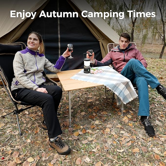 • NATURE BAMBOO & ALUMINUM LEGS: The camping table top is made from high-quality natural bamboo with bamboo texture and touched smoothly, which is water scratch resistance, environmentally and easy to clean. The anodized aluminum alloy square tube legs, making camping tables that fold up lightweight and sturdy. High quality materials ensure its long service life