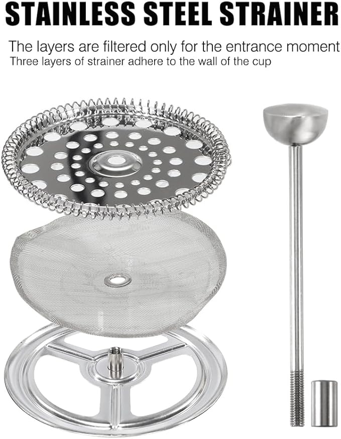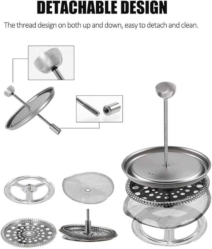 • COFFEE MAKER: The Titanium Cup is marked with graduation in oz and ml , with a spout for easy pouring, detachable french press for easy cleaning, this titanium french press pot is very convenient to make your own coffee.