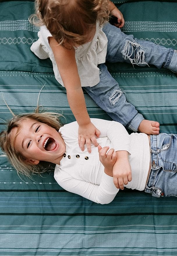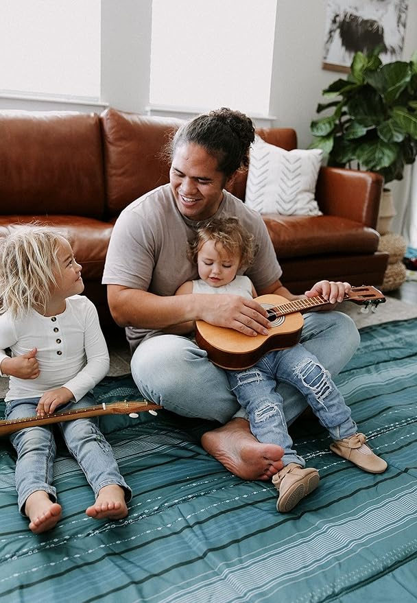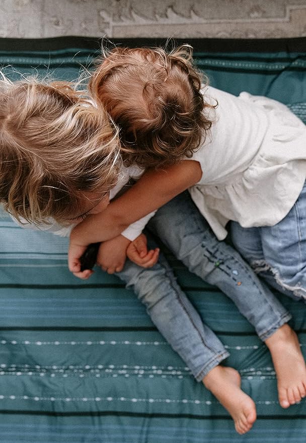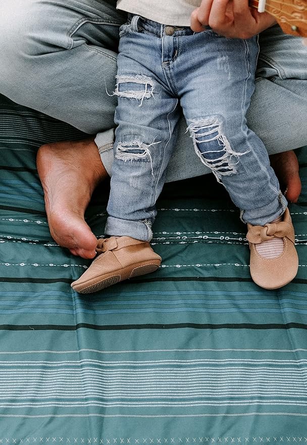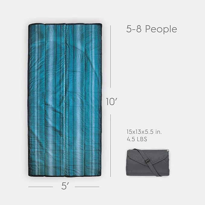 Little Unicorn 5'x10' XL Outdoor Family Picnic & Beach Blanket | Durable & Water-Resistant Fabric | Compact Fold & Easily Wipes Clean | Zipper Pocket (Shoreline Stripe)