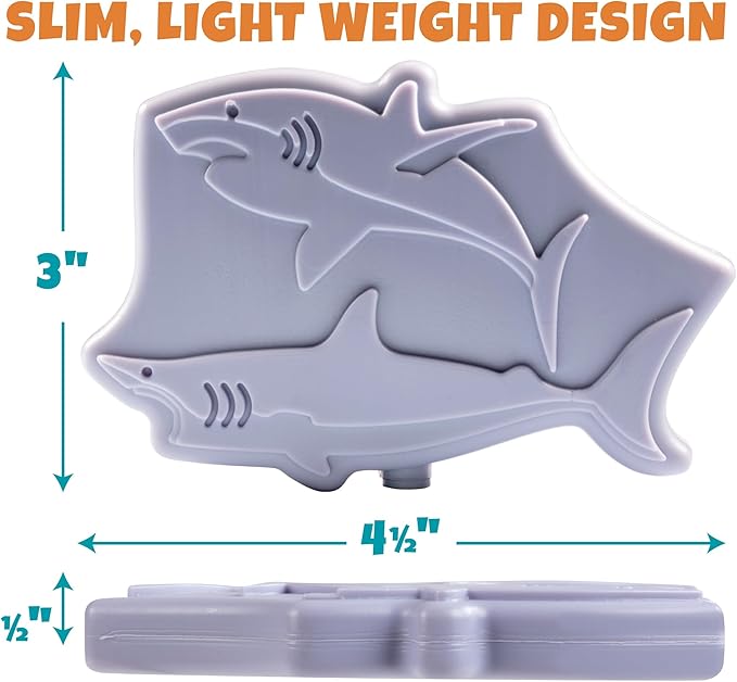 • 3 PACK OF SHARK HARD ICE COOLERS: Enhance your kid’s lunch by adding some color and personality to it! This Pack of 3 Shark shaped Hard Ice Packs, is the fun space saving lunch essential you need!