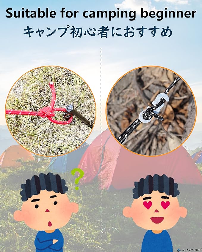 • 𝗕𝘂𝘆𝟮𝗼𝗿𝗠𝗼𝗿𝗲, 𝗔𝘂𝘁𝗼𝗦𝗮𝘃𝗲𝟱%✅FUNCTIONAL TENT ACCESSORIES - Don’t stress anymore when you’re out hiking or at the beach and you think your tent is going to be seen rolling away like a tumble weed, because we got you covered. Our hiking tent rope adjuster will help you to protect your tent securely from strong wind and rainstorm so you can finally have your peace of mind.