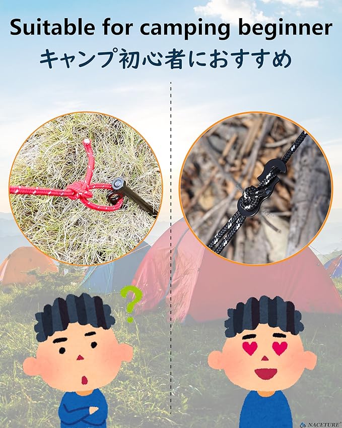 • 𝗕𝘂𝘆𝟮𝗼𝗿𝗠𝗼𝗿𝗲, 𝗔𝘂𝘁𝗼𝗦𝗮𝘃𝗲𝟱%✅FUNCTIONAL TENT ACCESSORIES - Don’t stress anymore when you’re out hiking or at the beach and you think your tent is going to be seen rolling away like a tumble weed, because we got you covered. Our hiking tent rope adjuster will help you to protect your tent securely from strong wind and rainstorm so you can finally have your peace of mind.