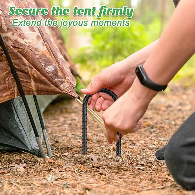 • 【KEEP YOUR KIDS SAFETY】Children's safety should be given priority. 12 inch U-shaped rebar stakes can prevent the trampoline from overturning or moving during use,and protect children from falling down and hitting the ground. For the safety of your baby and the peace of mind of parents, every parent should consider buying some extra things to fix your trampoline,camping tent or your child's football goal and swing
