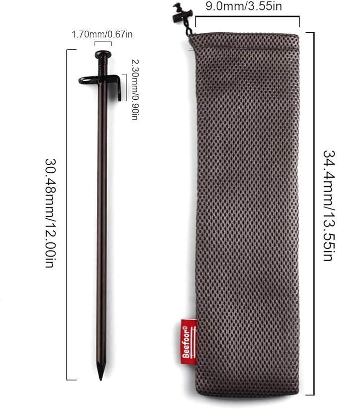 • Stakes Size: The tent stake is 12 inches long and 2/5 inches in diameter which is much bigger and stronger than most stakes on the market.