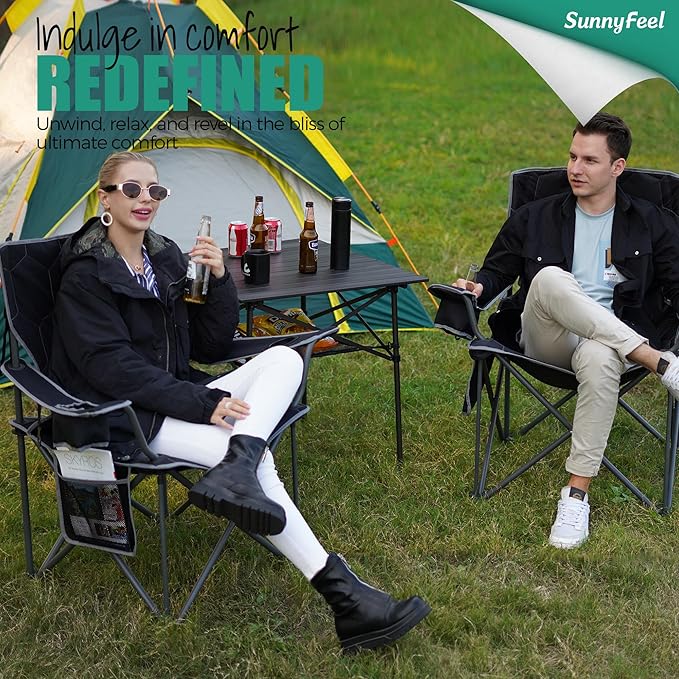 SUNNYFEEL XL Oversized Camping Chair 2 Pack, Folding Camp Chairs for Adults Heavy Duty Big Tall 500 LBS, Padded Portable Quad Arm Lawn Chair with Pocket for Outdoor/Picnic/Beach/Sports