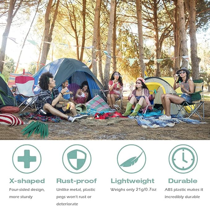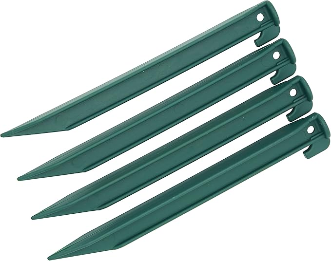 • Material: Durable and lightweight plastic, not cheap plastic; each stake weighs about 21g but unbreakable