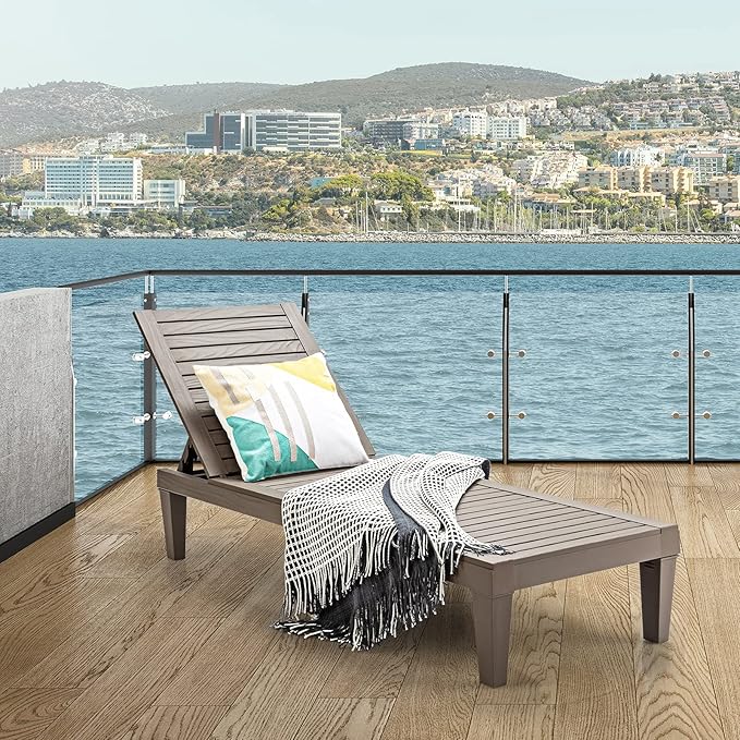 • High Quality Material & Solid Frame: Made of premium PP material, this outdoor chaise lounger is sun resistance and rain resistance, which is durable enough to stand the test of time. Strong construction with support bars behind the back can hold up to 400lbs. In addition, 6 reinforced legs offer extra support and stability.