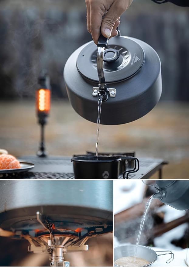 • This 1.5 Liter hard-anodized aluminum camping tea kettle is only 7.8oz weight, which is lightweight and compact for camping, backpacking.