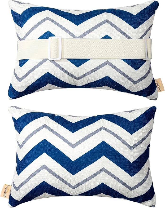 Outdoor Pillows for Lounge Chair Head Resting, Small Square Decotative Pillow with Adjustable Stripe for Recliner, Office Chair,Car Seat,Sofa Neck or Lumbar Attachment,Waterproof 2pack