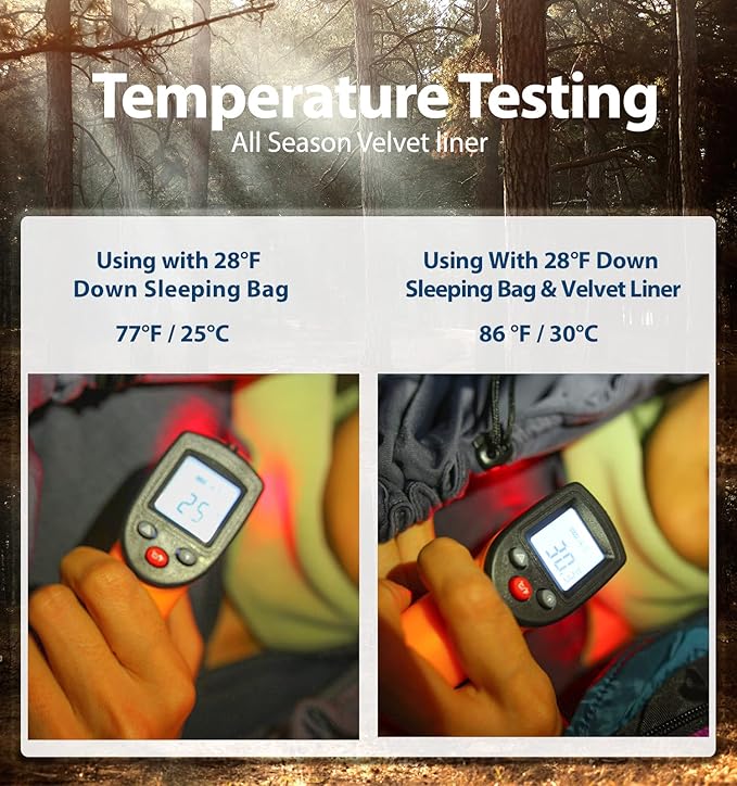• Velvet Velour for Added Warmth: Made with premium velvet fabric, this sleeping bag liner adds up to 14°F (8°C) of warmth to your sleeping bag, making it a great companion for cooler nights or additional comfort in a hostel or hotel setting.