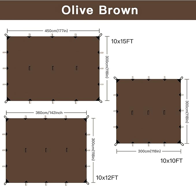 KALINCO Camping Tarp Waterproof, 10X12FT Hammock Rain Fly Tarp Tent, Multifunctional Tent Footprint, Lightweight and Compact for Backpacking, Hiking (Coffee-10X12FT)