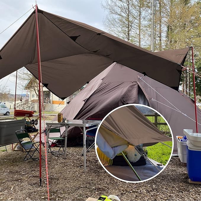 • 【WATERPROOF & UV PROTECTION】KALINCO waterproof camping tarp tent is made of 210T polyester with PU 3000mm waterproof coating, and has a taped central seam, quick-drying fabric ideal for rain flies. Our camping tarp coated with PU Inner layer, provide a UV protection in the sun
