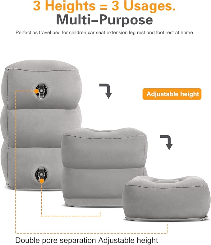 • Versatile Use: Our travel foot rest pillow can be used for foot rest in the office or at home. In airplane travel or car travel, we can use it to fill the gap to increase the rest space. Our travel pillow for kids can also be used for children to sleep and to sit and rest when tired. There are more functions for the travel footrest waiting for you to enjoy.