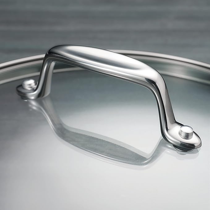 • Transparent Glass Lid & Comfortable Grip Handles: The clear glass lid locks in moisture and flavor while allowing you to monitor cooking progress easily. The securely riveted, ergonomic stainless steel handles provide a comfortable, firm grip for safe and confident handling.
