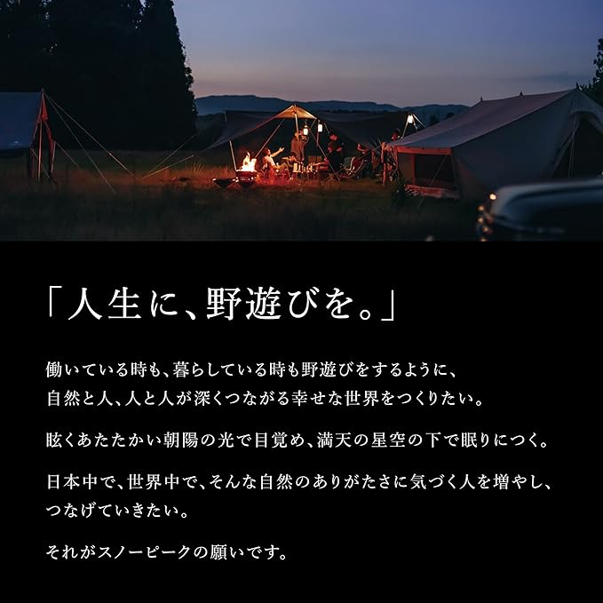 • Experience Nature: For more than 60 years, Snow Peak has been making heirloom-quality gear and apparel to help people slow down, connect with others, and feel close to nature