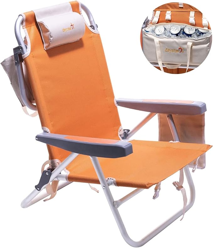SUNNYFEEL Low Beach Chair 5 Position Lay Flat, Portable Folding Backpack Beach Chairs Heavy Duty with Cooler Bag, Cup Holder for Outdoor/Lawn/Trip/Picnic/Fishing, Foldable Camping Chair