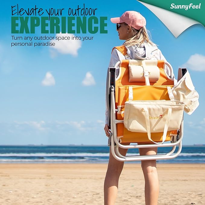 • A Backpack Beach chair that is built for anywhere: Use it as a camping chair, folding chair, lawn chair, travel chair, beach chair and more. Suitable for outdoor adventures, tailgating, fishing, backpacking, beach, picnic, sport games, car travelling, or just put it in the backyard, cabin, balcony, patio lawn parties. The SunnyFeel camping chair is an essential to add to your camping accessories.