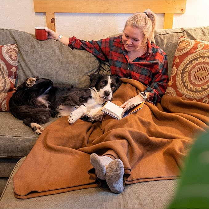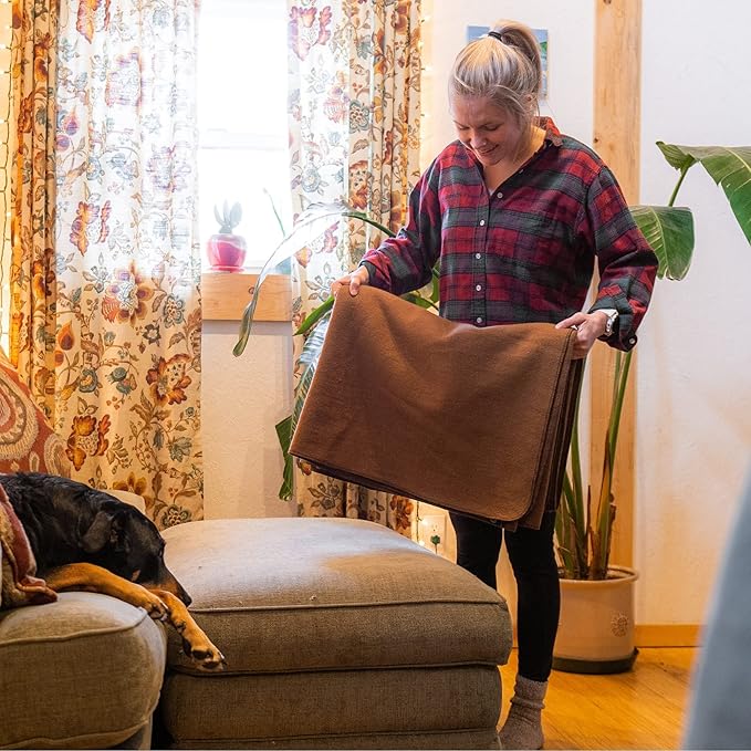 • PERFECT ANYWHERE: Loom-woven and hemmed on all sides with contrast lock stitching, our blanket looks right at home in the woods or on your couch. Wool is a naturally fire-retardant material. Our blankets are NEVER treated with any additional flame-retardant chemicals, making it safe for you and your family.