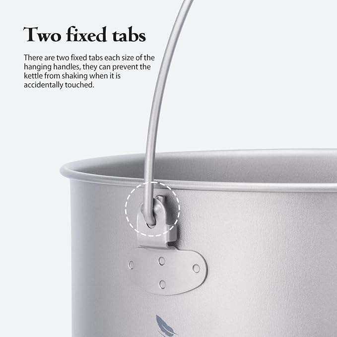 Boundless Voyage Titanium Hanging Pot for Outdoor Camping Backpacking Hiking Ultralight Portable Cooking Pot Camp Kitchen Cookware 1300ML/1950ML/2900ML