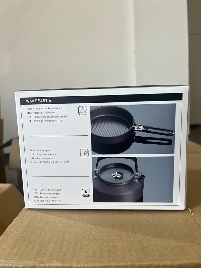 • Durable construction: with a hard anodised aluminium and stainless steel construction, this camping pot set allows for quick and easy cleaning after your favourite camping meals. The Feast 4 is the perfect balance between lightweight and durable outdoor cookware.