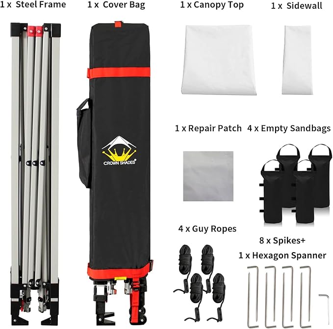 • STO’ N GO SYSTEM - Our lift-free system makes collapsing, storing, and transporting the 10x10 tent a breeze. The 10x10 tents can be stored with the fabric attached, with a specialized pocket for 4 sandbags, 8 stakes, and 4 guy ropes. Integrated wheels in the feet allow easy movement even when the instant shelter tent is set up, by simply lifting the side without wheels. This feature is especially useful for quick setup and takedown at locations like the patio or sports events