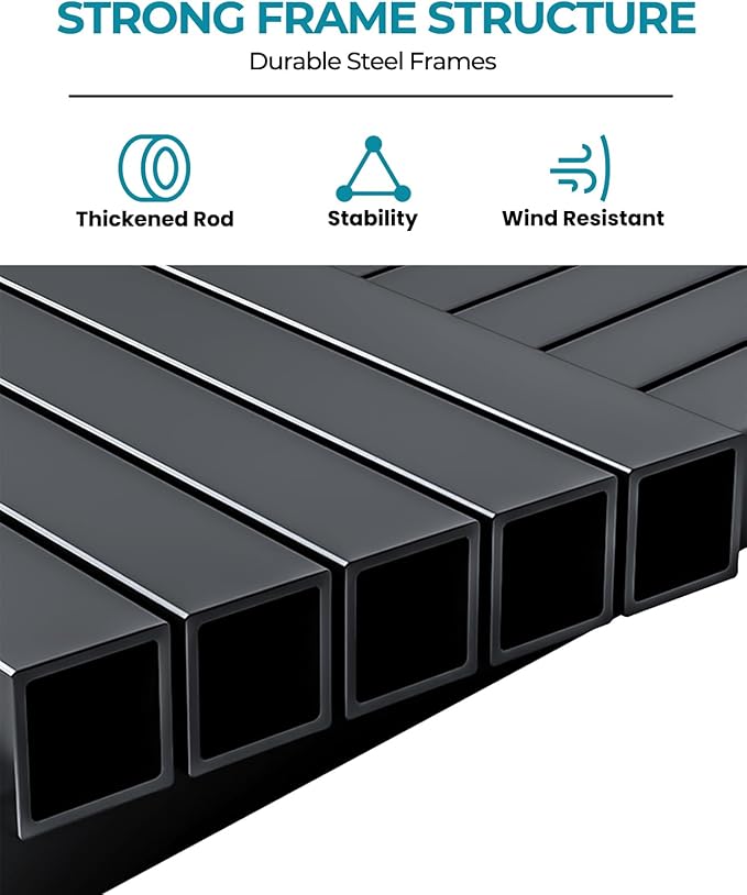 • 300D Fabric–100% Waterproof, UPF 50+, Windproof: 10x10 canopy tent features 300D Oxford fabric with high tear resistance for long-lasting use. Its 5000mm+ waterproof rating outperforms standard tents (1500-2000mm), handling heavy rain. UPF 50+ blocks 99% of UV rays, while the PU coating enhances light transmission and wind resistance
