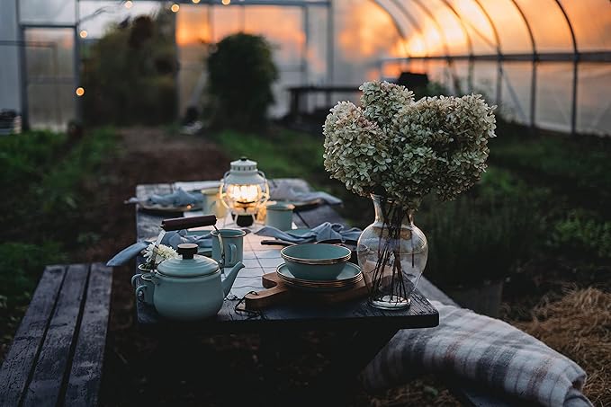 • Vintage-Inspired Camping Kitchen Set: Our enamelware bowls are designed with a timeless appeal, featuring a baked stainless steel rim with a bronze-like patina appearance for added charm