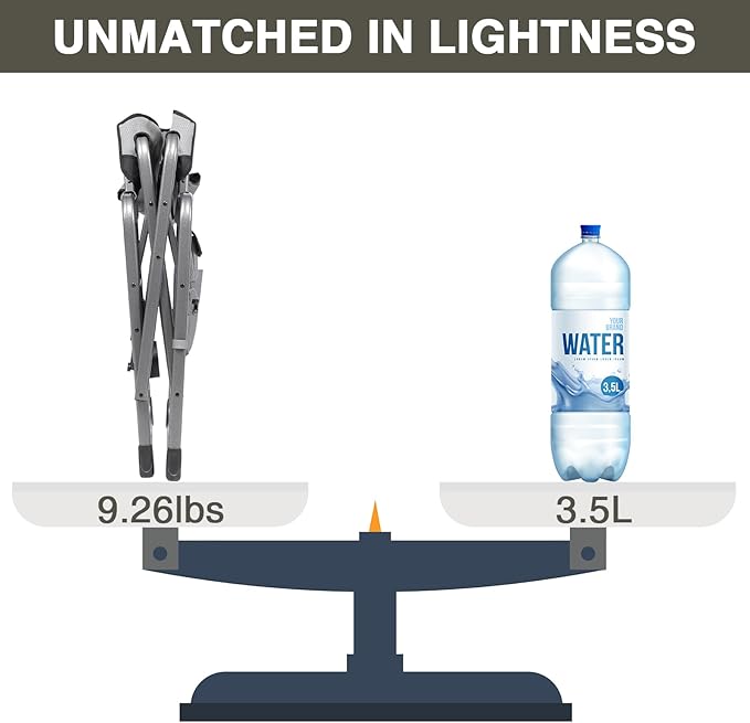 • LIGHTWEIGHT AND PORTABLE: Weighing only 9.26 pounds, this chair’s lightweight aluminum frame makes it easy to carry. Whether for camping, sports events, or backyard gatherings, this chair is the perfect travel companion