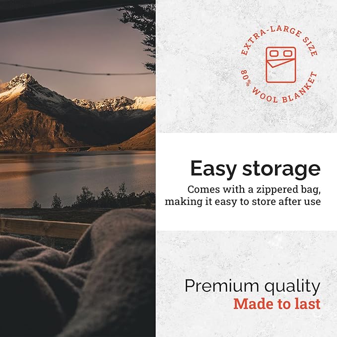 • [OUTDOORS, EMERGENCIES AND SURVIVAL] The Excursion Extra Large Wool Blanket is ideal for Camping, Outdoor Activities, Cabins, RVs, Bush Craft and more. The thermal qualities of the wool protect you against the elements so you can insulate against the cold and stay warm when venturing away from home. Wool blankets are essential to endure a emergencies or survival situations. Every person in the household should have a wool blanket, just in case, to trap vital body heat and stay warm.