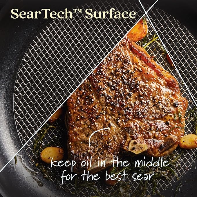 • WHAT YOU GET: A versatile 10-inch nonstick frying pan featuring SearTech(tm) technology to sear like stainless steel and cast iron and create the flavors that stop conversations.