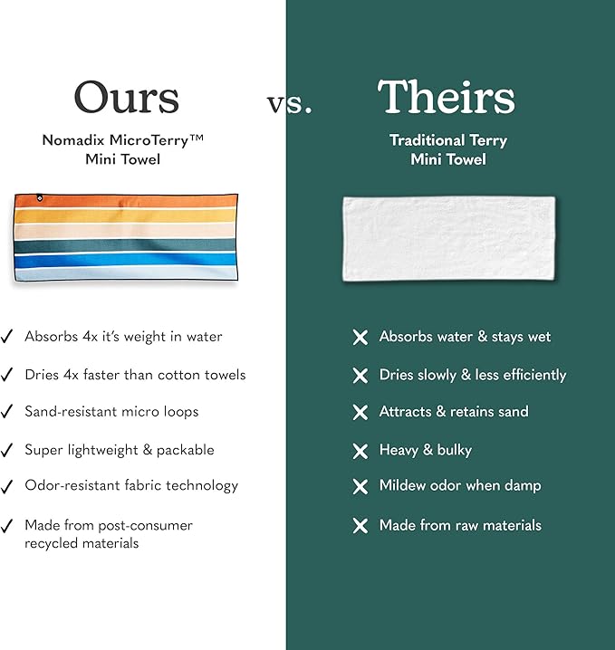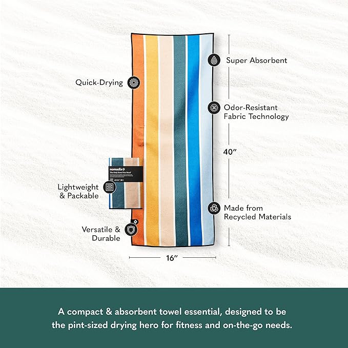 Nomadix Mini Towel - Perfect for Beach, Pool, Travel, Camping, Yoga - Made with Recycled Materials - Super Absorbent - Sand Resistant - Stripes Retro - 16x40