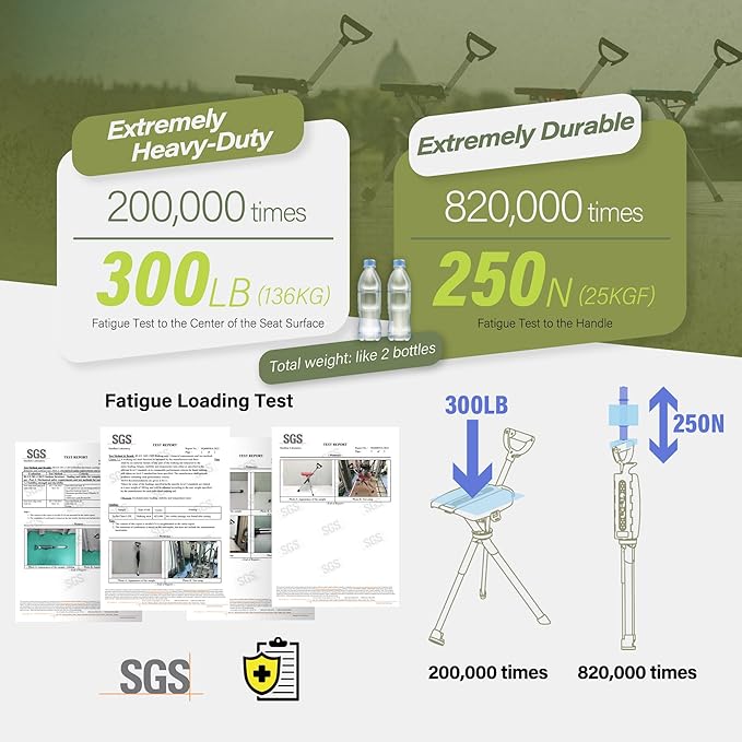 • REINFORCED STRUCTURE: Dual stability and Reinforced Structure, with European EN 581 standard tested by SGS. It also complies with CNS 15192 Taiwan National standard. Suitable for using as a camping chair with the function of a walking stick at the same time.