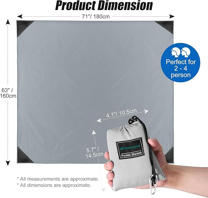 • 【Suitable For 2-4 Person】: Suitable for family Couple to picnic. Perfect to outdoor hiking for 2 to 4 people. It offers enough space that 4 adults can lie down. Size 63" x 71"/180cm x 160 cm lightweight only 110g, foldable, ideal outdoor beach blanket for vacation.