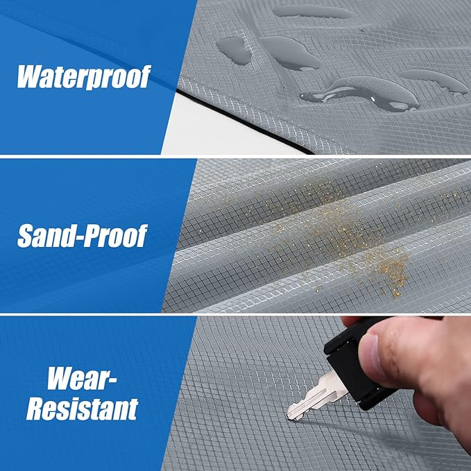 • 【Durable and Waterproof】: Made of nano-grade nylon cloth with the surface is coated with a heat resistant coating, the membrane surface can be used to isolate water droplets. The tight textile structure guarantees the isolation of all fine sand and water. keeping the top surface comfortable and dry when used on damp grass or beach.