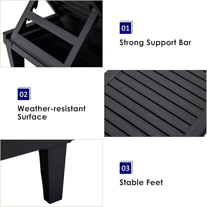 • High Quality Material & Solid Frame: Made of premium PP material, this outdoor chaise lounger is sun resistance and rain resistance, which is durable enough to stand the test of time. Strong construction with support bars behind the back can hold up to 400lbs. In addition, 6 reinforced legs offer extra support and stability.