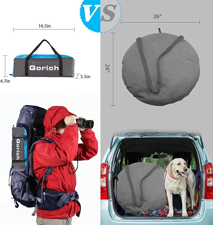 • Easy Set Up & Carry: Setting up fast within minutes. Gorich beach tent is much easier to fold than any kind of beach tents. It could fold down to a travel size of 16.5"L x 5.5"W x 4.7"H, weights 4.85 lbs. With a campact carrying bag, you can put it in your backpack, much easier to carry