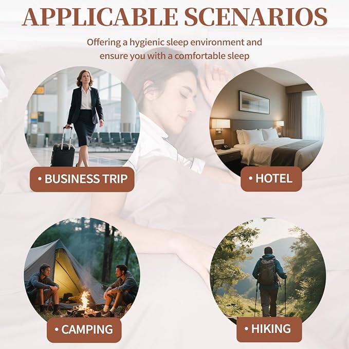 • HUMANIZED DESIGN: The lightweight sleeping travel sheet has two buckles on the top of the sheet,opening on one or two side to make it easy for you to get into. It has an invisible zipper at the bottom for easy ventilation and free movement of your feet.You can open the bottom zipper if you feel hot sleeping in travel sheets.
