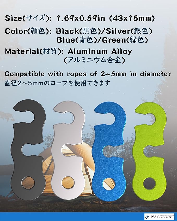 • ✅HIGH-QUALITY AND DURABLE ROPE TENSIONER - Replaces the cheap plastic cord tensor you already have on your camping and outdoor equipment, and say hello to these amazing, compact, and durable guy lines tensioner tent cords made of quality aluminum alloy which is ultralight, and convenient to carry in your backpack on a camping.