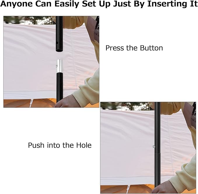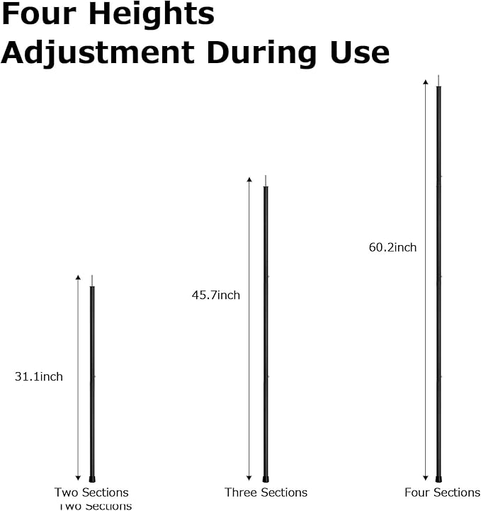 • Simple Button Lock Mechanism Simplifies Your Installation Process: Just push the 2 sections of poles into the holes by buttressing,after use,simply pull the spring to disassemble.