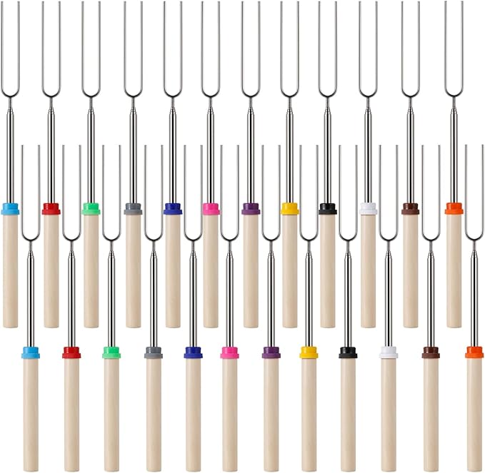 • Having Fun: It's a fun way to prepare delicious snacks using BBQStyle marshmallow campfire roasting sticks. The set features 24 stronger sticks for fire pit. You can use them to roast smores, marshmallows, sausages, hotdogs, wieners, and smore sticks. There are 24 easy to identify as "Mine". Everyone can find one they like.