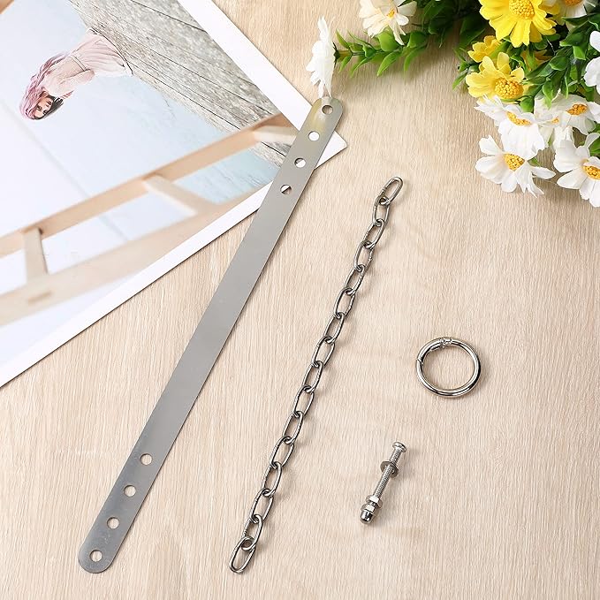 • Suitable Size: the length of stainless steel straight sheet is 26 cm/ 10.23 inch, and the diameter of round hole is 5 mm; The diameter of screw is 4 mm, length is 35 mm, the stainless steel chain 20 cm/ 7.87 inch in length; Each accessory can be nicely matched, convenient for your use